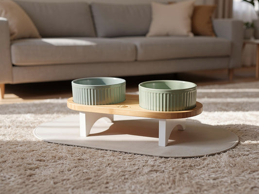 Comedero Elevado de Bambú y Cerámica – Altura Ajustable con Alfombrilla Antideslizante | BELMIN