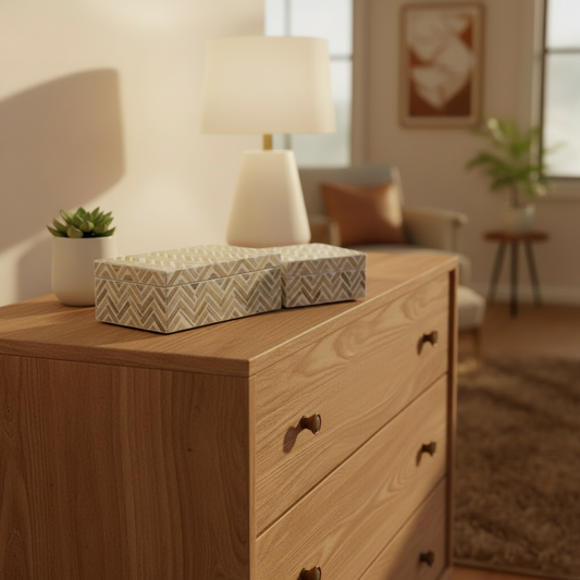 Juego de Cajas Decorativas Blanco Marrón Resina Bambú Tropical (2 Unidades) | Home ESPRIT