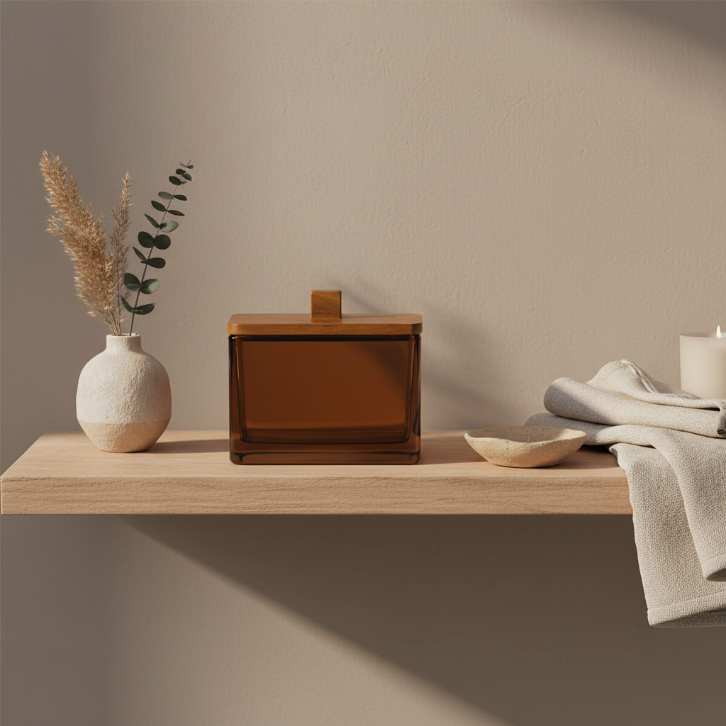 Esta caja decorativa de cristal en tono marrón es el complemento perfecto para añadir un toque de sofisticación y calidez a tu hogar.