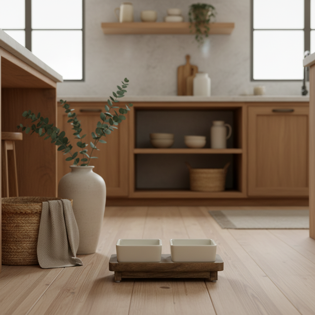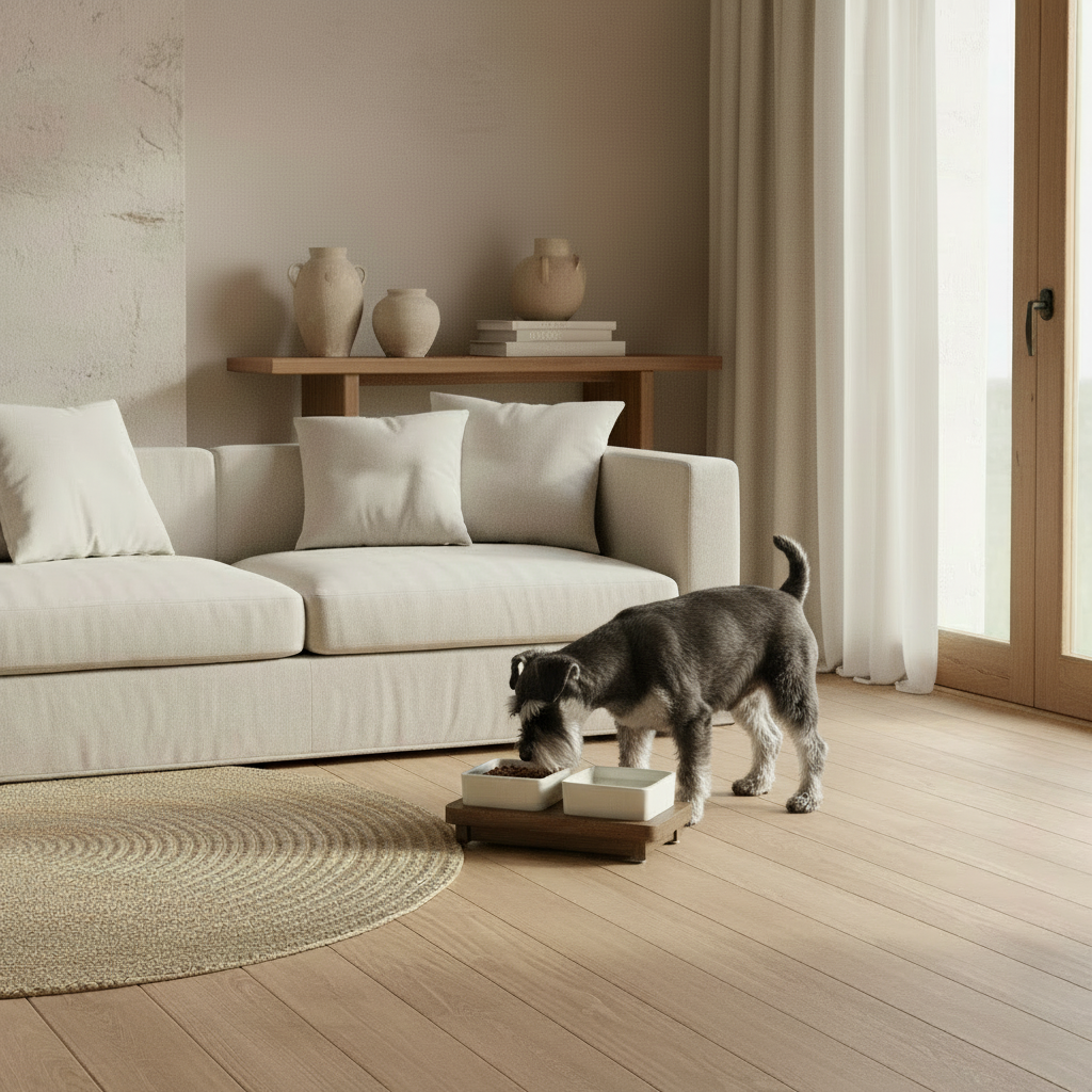 Su mezcla de tonos marrón, gris y blanco aporta un look elegante y contemporáneo que encaja perfectamente en cualquier hogar. Ideal para quienes buscan un comedero práctico, higiénico y con un diseño cuidado.