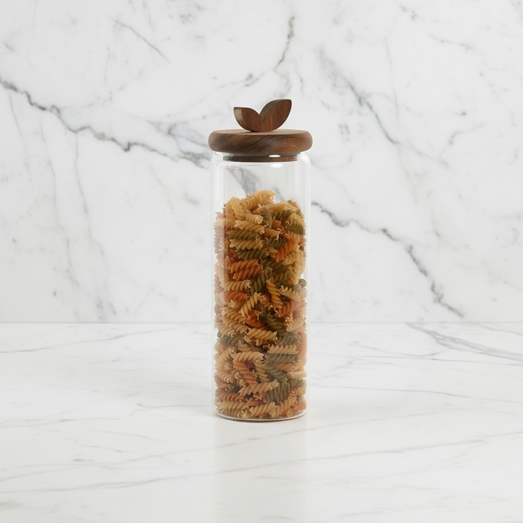 El cristal transparente mantiene los ingredientes siempre visibles y ordenados, mientras que la madera de acacia añade calidez y un carácter natural que transforma cualquier estantería o encimera en un espacio decorativo. Un set pensado para quienes buscan simplicidad, estilo y orden en un solo gesto.